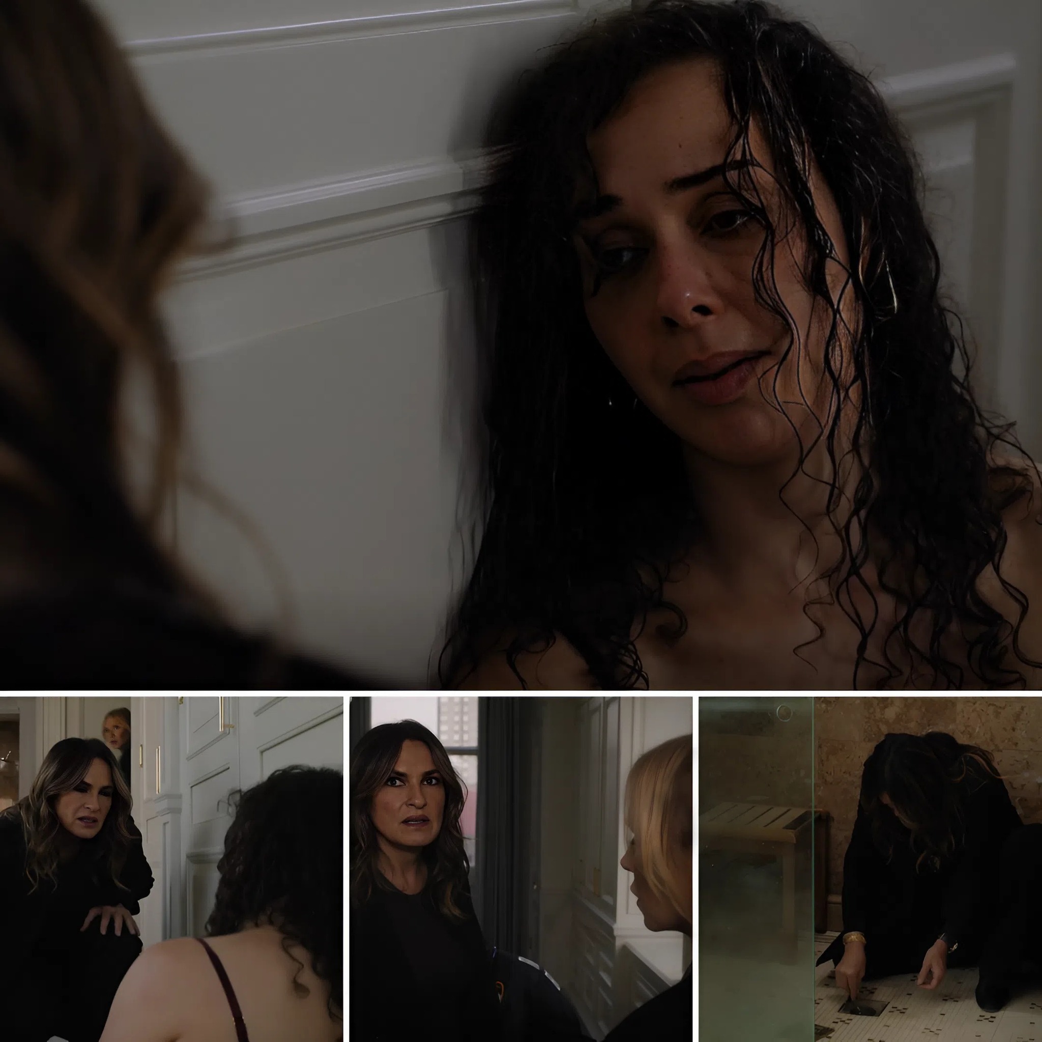 “Hey, it’s okay, it’s okay, are you Skylar?” asks a calm Benson, who introduces herself to Skylar, who then tells Benson: “I was raped”. The assault took place at an open house for a brand new development, and Benson realizes that it means the plumbing is also brand new, leading to her opening up the drain and finding hair.